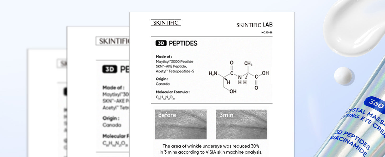 3D peptides help minimize fine lines and prevent premature aging around the eyes.