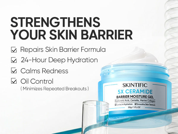 The 5X Ceramide Barrier Repair Moisture Gel is a lightweight, gel-textured moisturizer formulated with 5 different types of Ceramides, along with powerful ingredients like Hyaluronic Acid, Centella Asiatica, and Marine Collagen. It is designed to repair and maintain your skin's natural barrier, leaving your skin deeply hydrated and smooth without the greasy feel. Perfect for sensitive, acne-prone, and oily skin types, this gel-based moisturizer offers a cooling sensation and absorbs quickly for long-lasting hydration.