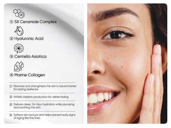 - Hydrates & Repairs: The 5X Ceramides (Ceramide NP, EOP, AP, AS, NS) work together to restore and maintain the skin's protective barrier, locking in moisture and preventing dehydration.